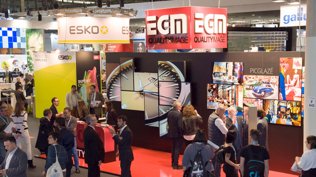 EGM ha presentado en esta edición de Graphispag 2017 un llamativo Stand abierto ideado por nuestro propio departamento de diseño en el cual se han exhibido las técnicas más novedosas de impresión digital Fine-Art en combinación y contraste con un Video Wall de monitores Digital Signage visionando proyectos de creación de contenidos digitales realizados en EGM.