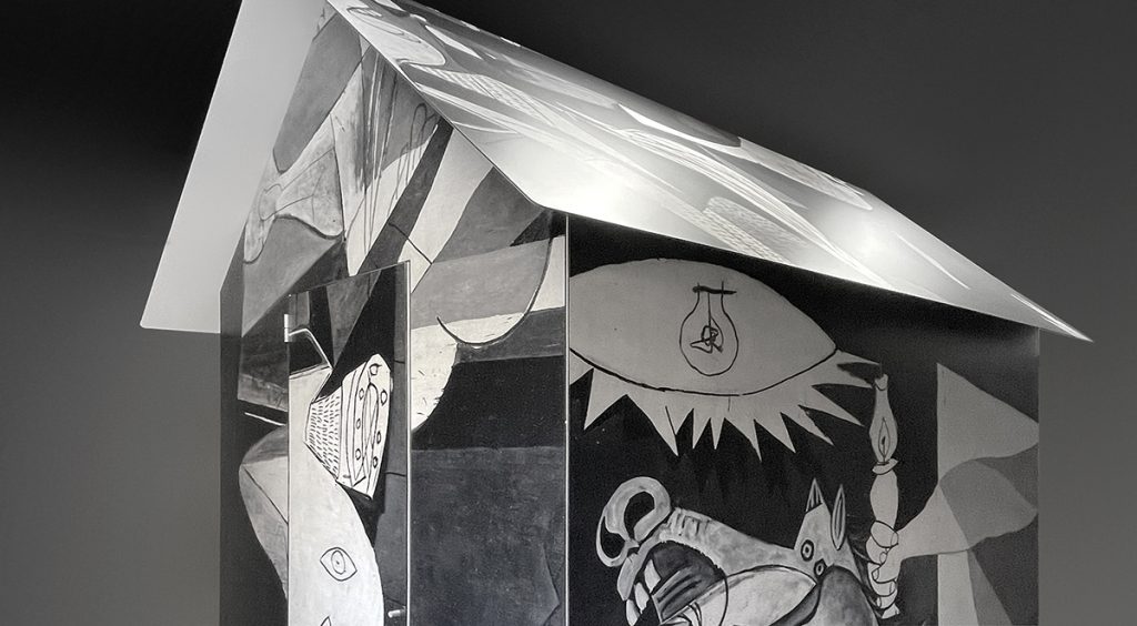 Ochenta y cinco años después, Eugenio Ampudia ha convertido la imagen más poderosa del sentir del horror de una guerra, en un suelo, cuatro paredes y un techo, un refugio.